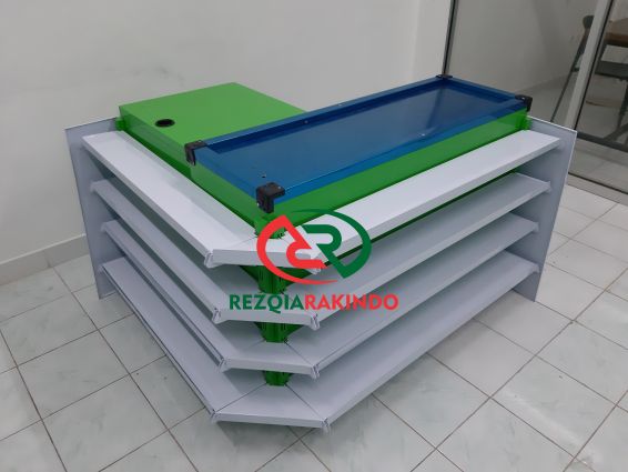 - Shelving Atas sebagai tatakan rak yang betingkat-tingkat untuk display barang jualan.